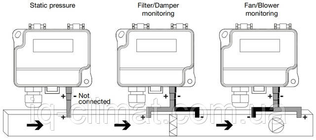 Датчик тиску повітря аналоговий DPT250-R8-AZ з автоматичним калібруванням нуля, виробництва HK Instruments (Фінляндія) призначений для вимірювання надлишкового тиску, розрідження та різниці тисків. Датчик застосовується у стерильних приміщеннях, у медичній техніці, у вентиляційних каналах та каналах систем кондиціювання повітря, для контролю фільтрів передаючи інформацію на контролер, або безпосередньо на частотний перетворювач. Вимірюваним середовищем є повітря (без конденсату) або газоподібні, не агресивні та негорючі речовини.